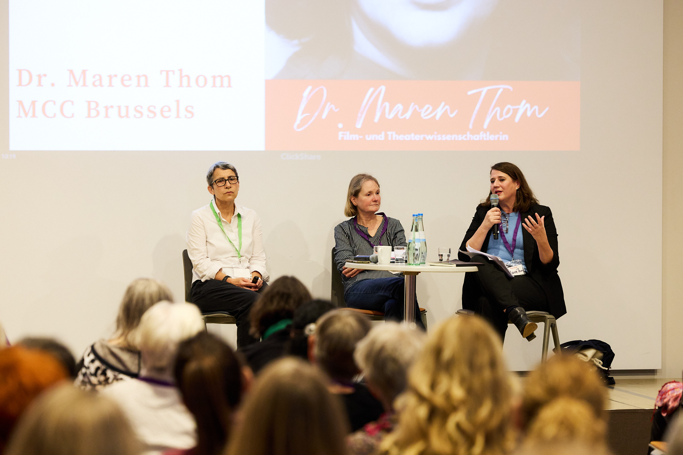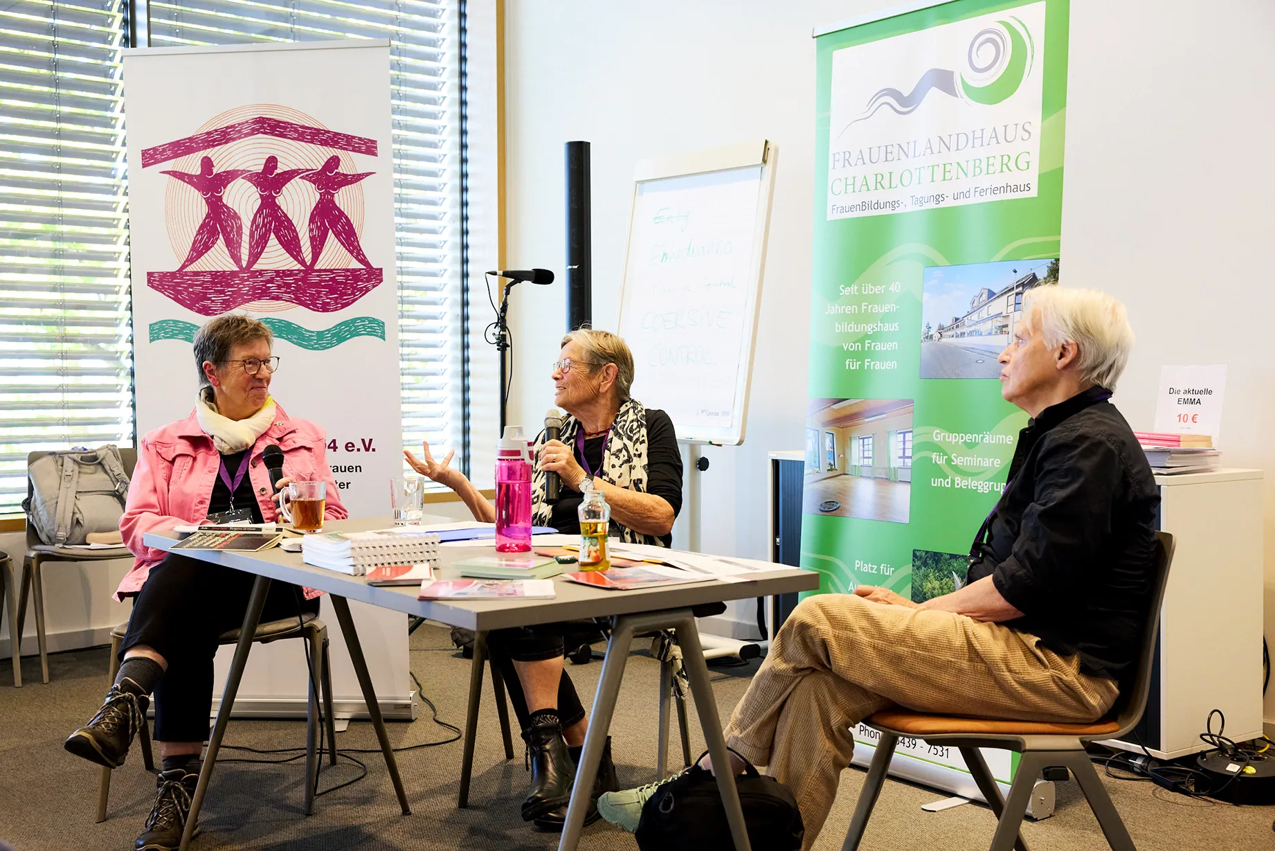 Im Anschluss diskutierten Patricia Schulz, Marie-Luise Vollbrecht und Gunda Schumann über den Umgang mit Cancel Culture, akademischen Ausschlussmechanismen und über den Backlash gegen Lesben.