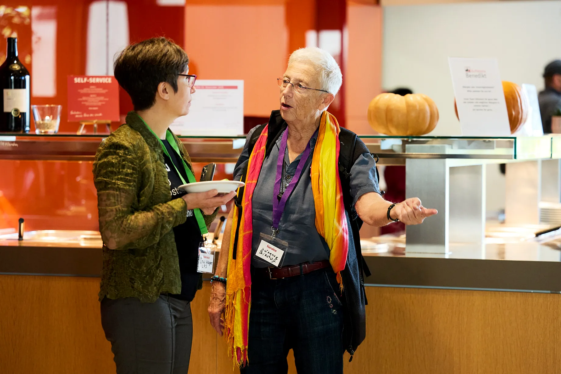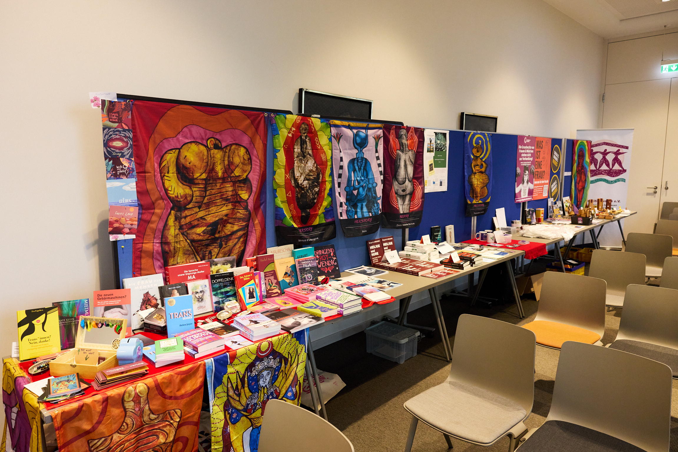 Ab dem Nachmittag füllte sich das KSI mit Teilnehmerinnen aus Deutschland, den Niederlanden, der Schweiz, Iran, Bosnien, Italien, Spanien und Großbritannien. Nach dem Check-in und dem Aufbau der Büchertische eröffnete ein gemeinsames Abendbuffet die Konferenz.
